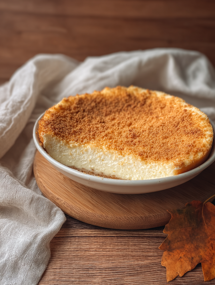 Cremiger High-Protein-Cheesecake mit knusprigen Mandel-Streuseln. Ohne Zuckerzusatz, mit Mönchsfrucht gesüßt und in 20 Minuten fertig gebacken – perfekt als Dessert oder süßes Frühstück mit extra viel Eiweiß.