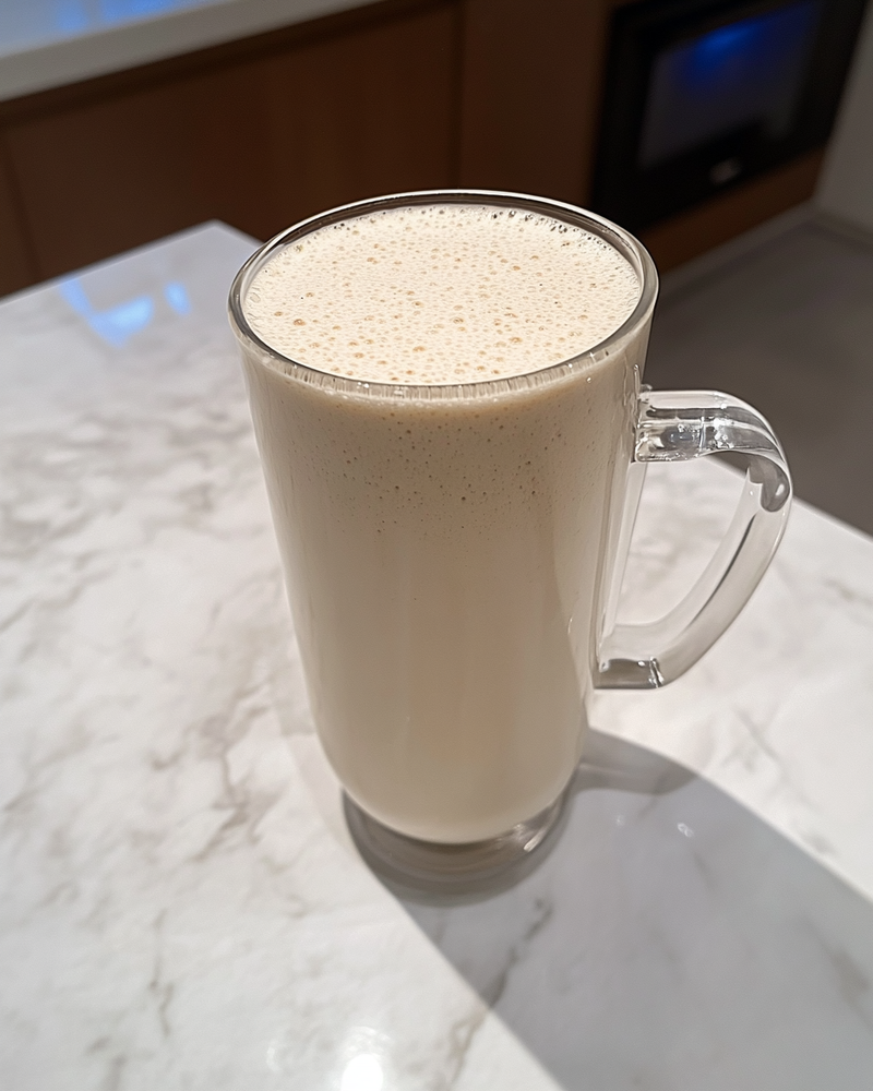 Das ergibt einen großen, cremig-warmen Shake (ca. 1 Liter).